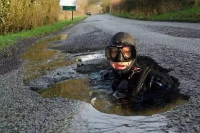 A number of pranksters in the Lancashire have taken a series of photos to illustrate the scale of the problem in their attempts. By bathing and scuba diving in potholes, the residents are hoping to embarrass local authorises and central government into action.